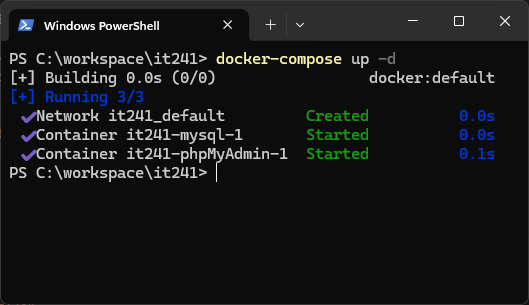 ขั้นตอนที่ 2. ให้นักศึกษาสร้างไฟล์ชื่อ docker-compose.yaml ไว้ใน directory ที่นักศึกษาได้สร้างขึ้น เช่น C:\workspaces\it241\docker-compose.yaml