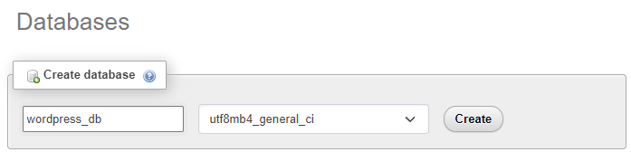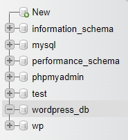 ขั้นตอนที่ 9: คลิกลิงค์ New เพื่อสร้างฐานข้อมูลสำหรับ WordPress ตั้งชื่อเป็น wordpress_db จากนั้นกดปุ่ม Create