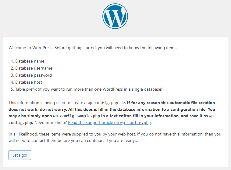 ขั้นตอนที่ 11: เปิดบราวเซอร์ไปที่ http://localhost ดังแสดง ให้กดปุ่ม Let's go!