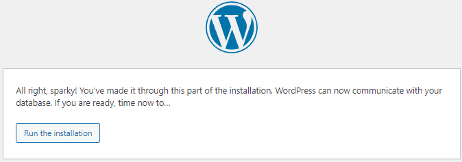 ให้เลื่อกรายการ English (United States) จากนั้นกดปุ่ม Continue จากนั้น WordPress จะแสดงหน้าจอให้ตั้งค่าครั้งแรกต่าง ๆ ดังแสดงต่อไปนี้ (บางครั้งหน้านี้อาจไม่ปรากฎขึ้นอยู่กับเวอร์ชัน wordpress ในช่วงเวลาที่นักศึกษาทำการติดตั้ง)