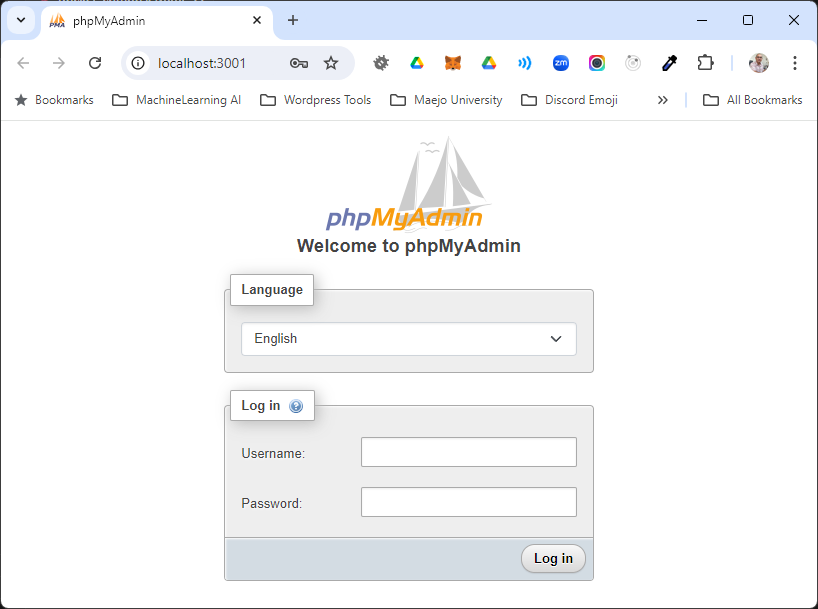 เข้าสู่ phpMyAdmin โดยพิมพ์ที่ url : http://localhost:3001